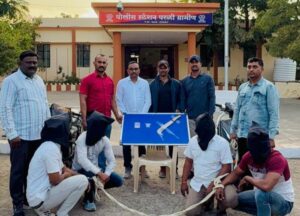 परळीच्या ग्रामीण पोलीस ठाणे हद्दीत असणाऱ्या धारावती तांडाकडे निघणाऱ्या कालरात्री मंदिराजवळ एका तरुणाला चार जणांनी पाठलाग करून अडविले.यावेळी त्याच्या डोळ्यात चटणी टाकून त्याच्याकडे सोन्याची अंगठी आणि लॉकेट लंपास केले.यात परळीच्या ग्रामीण पोलिसांनी गुन्हा दाखल केल्यानंतर याचा तपास स्थानिक गुन्हे शाखेने सुरु केला.पोलीस उपनिरीक्षक सुशांत सूतळे व त्यांच्या टीमला या गुन्हयाची माहिती मिळाल्यानंतर त्यांनी पंकज तुकाराम उगलमुगले (वय-२५,रा.पांगरी,ता.परळी),वैभव राम बिडगर (वय-२०,रा.दाऊतपूर,ता.परळी),शामसुंदर बाळासाहेब फड (रा.मरळवाडी,ता.परळी),आदित्य सुरेश उपाडे (वय-२०,रा.सिद्धार्थ नगर,परळी) याना ताब्यात घेऊन चौकशी केली असता या चौघांनी गुन्ह्याची कबुली दिली आहे. पोलिसांच्या या कारवाईत चैन,अंगठी,मोटारसायकल,स्कुटी व कोयता असा एकूण १ लाख ५८ हजारांचा मुद्देमाल हस्तगत केला.ही कारवाई पोलीस अधिक्षक नवनीत कॉवत,अप्पर पोलीस अधिक्षक चेतना तिडके,पोलीस निरीक्षक शिवाजी बंटेवाड यांच्या मार्गदर्शनाखाली पोलीस उपनिरीक्षक सुशांत सुतळे,पोलीस हवालदार मारुती कांबळे,रामचंद्र केकाण,विष्णू सानप,गोविंद भताने,सचिन आंधळे,अतुल हराळे यांच्या वतीने करण्यात आली.