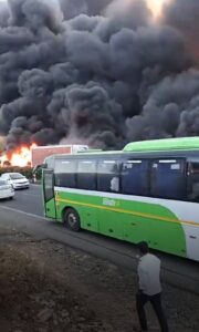 शुक्रवारी सायंकाळी पेट्रोल पंपासाठी डिझेल घेऊन येणारे टँकर कोळवाडीजवळ आल्यानंतर पेटले.अज्ञात कारणातून या टँकरला आग लागली होती.भररस्त्यावर धावत्या टँक्टरने पेट घेतल्याने खळबळ उडाली.टँकर डिझेलचे असल्याने स्फोट होऊन गाडी जळून खाक झाली.या आगीत परिसरातील रस्त्यावर असलेल्या झाडांना सुद्धा याचा मोठा फटका बसला असून झाडे पेटली आहेत. सध्या घटनास्थळी ग्रामीण पोलीस आणि अग्निशामक दल पोहत असल्याचे कळते. या आगीत जीवितहानी झाली का याची माहिती अजून समोर आलेली नाही.